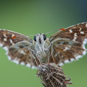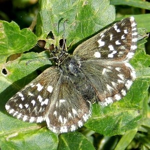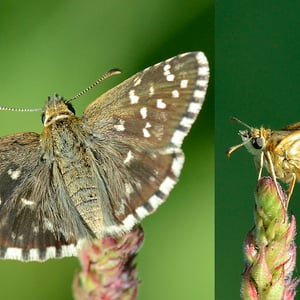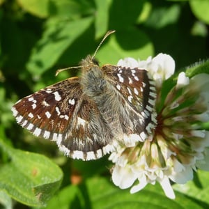 The southern grizzled skipper is also very closely related to the grizzled skipper and has not been separated by significant isolation reproductive barriers. These two species cannot be differentiated according to external characteristics. Regarding their genitalia, however, they differ significantly. And while P. malvoides usually develops two generations per year, the second generation of P. malvae is a very rare exception. The two species can be crossed with each other, but in nature there is only a very narrow band with hybrid finds - otherwise the taxa are spatially clearly separated. P. malvoides is therefore often listed as a (southwestern) subspecies of P. malvae - but mostly as an independent species because of the narrow and constant band of hybrids. Imagos of the species pair from Portugal, Spain, southern France and Italy, but also southern Switzerland and the parts of Austria mentioned, always belong to P. malvoides, those from Germany (with very few exceptions in the border area), from Scandinavia or Poland and northern Switzerland, as well but from Greece to European Russia (and further through Asia) always to Pyrgus malvae. A genital examination is only necessary in the narrow contact belt of the two species.