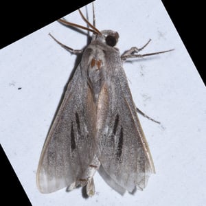 The wingspan is 50–57 mm. The forewing is grey with two or three black stripes in the middle of the wing. Other marking are vague.