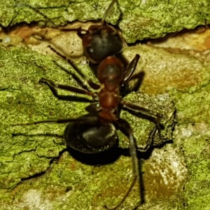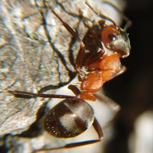 Formica rufa, also known as the red wood ant, southern wood ant, or horse ant, is a boreal member of the Formica rufa group of ants, and is the type species for that group, being described already by Linneaus in the first version of Systema Naturae from 1758. It is native to Eurasia, with a recorded distribution stretching from the middle of Scandinavia to the northern Iberia and Anatolia, and from Great Britain to Lake Baikal, with unconfirmed reportings of it also to the Russian Far East. There are claims that it can be found in North America, but this is not confirmed in specialised litterature, and no recent publication where North American wood ants are listed mentions it as present, while records from North America are all listed as doubious or unconfirmed in a record compilation. Workers head and thorax are colored red and the abdomen brownish-black, usually with a dorsal dark patches on the head and promensonotum, alghtouh some individuals may be more uniform reddish and even have some red on the part of the gastern facing the body. In order to separate them from closely related species, specimens needs to be inspected under magnification, where difference in hairyness are among the telling characthers, with Formica rufa being more hairy than per example Formica polyctena but less hairy than Formica lugubris. Workers are polymorphic, measuring 4.5–9 mm in length. They have large mandibles, and like many other ant species, they are able to spray formic acid from their abdomens as a defence. Formic acid was first extracted in 1671 by the English naturalist John Ray by distilling a large number of crushed ants of this species. These ants primarily eat honeydew from aphids. Some groups form large networks of connected nests with multiple queen colonies, while others have single-queen colonies.