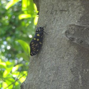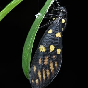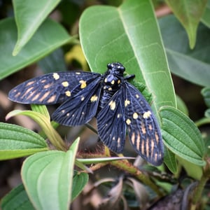 Gaeana maculata is a species of insect belonging to the family Cerambycidae, commonly known as longhorn beetles. It is characterized by its elongated body, reaching lengths of up to 3 centimeters. The species is known for its distinctive black and yellow coloration, with black spots scattered across its wings. Gaeana maculata is primarily found in tropical regions, where it feeds on plant sap and plays a role in pollination.