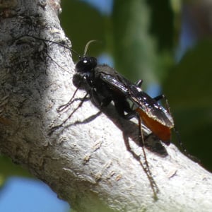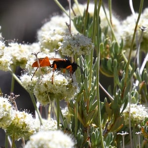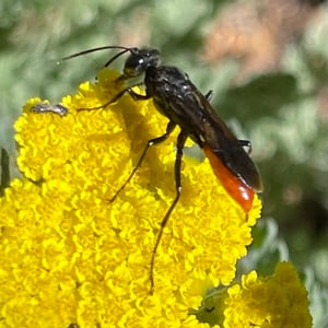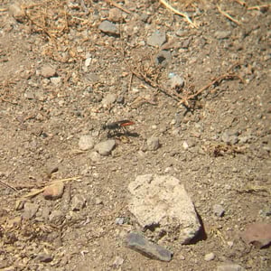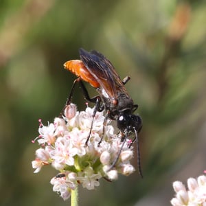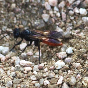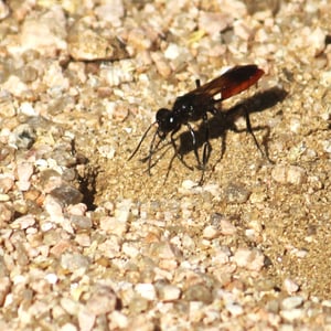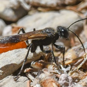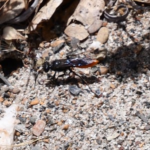 Sphex lucae is a species of solitary wasp commonly found in Europe. It belongs to the family Sphecidae and is known for its distinctive black and yellow coloration. These wasps are known for their fascinating hunting behavior, as they capture and paralyze prey, such as grasshoppers or crickets, before burying them in underground nests as a food source for their offspring.