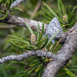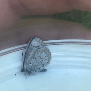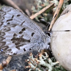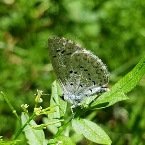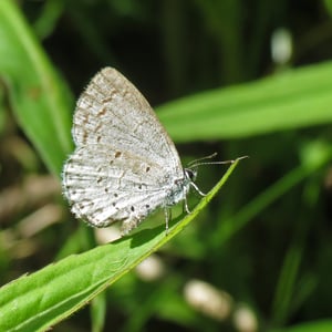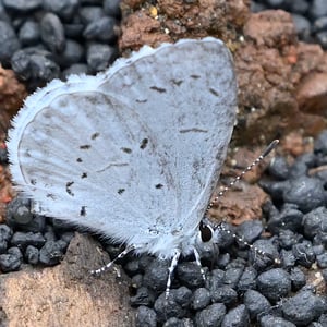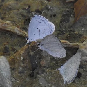 Celastrina ladon, the spring azure or echo blue, is a butterfly of the family Lycaenidae. It is found in North America from Alaska and Canada south of the tundra, through most of the United States except the Texas coast, southern plain and peninsula Florida; south in the mountains to Colombia. Also on Molokai island, Hawaii. Since the publication of a monograph on the Lycaenopsis group of lycaenid genera in 1983 by Eliot & Kawazoe, C. ladon has been considered by some taxonomic authorities to be a subspecies of C. argiolus (Linnaeus, 1758). Other authorities still consider C. ladon and related species C. neglecta and C. serotina, to be "full" species. Its wingspan is 22-35 mm. The metallic blue wings have a black margin in females. Undersides of the wings are white with speckles.