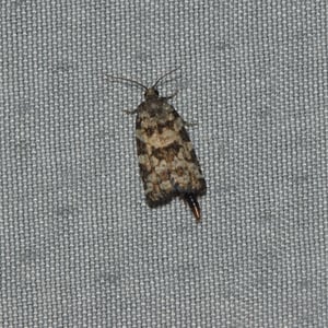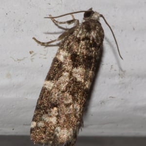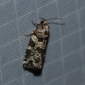 Archips packardianus, the spring spruce needle moth or spruce needleworm, is a species of moth of the family Tortricidae. Spruce needle worms are commonly found in small numbers on spruce and trees of other coniferous genera throughout most of Canada and the northeastern US (Rose and Lindquist 1985). Archips packardiana overwinters as a tiny larva in a mined needle. Needle mining is resumed in the spring, the larvae later moving to feed on new foliage, where they spin considerable webbing. Full-grown larvae have a pale green head, sometimes patterned with brown, and a pale body and pale thoracic legs, and are about 20 mm long. The larva pupates, usually in the webbed needles, and the adult emerges in summer to early fall. The closely related Archips strianus is much less common, but probably has a habitat similar to that of A. packardiana (Rose and Lindquist 1985). The larvae have dark thoracic legs and small dark areas around the base of the thoracic hairs. The habitat consists of coniferous and mixed woods. The wingspan is about 17 mm. There is a pattern of black and white patches on the forewings. The hindwings are dark grey. Adults have been recorded on wing in April and from June to October. The larvae feed on the needles of Picea and Abies species.