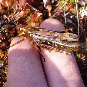 Stethophyma is a large insect belonging to the family Tettigoniidae, commonly known as bush crickets or katydids. It is characterized by its elongated body, long antennae, and powerful hind legs adapted for jumping. Stethophyma species are typically green or brown in color, allowing them to blend in with their natural surroundings. They are known for their distinctive chirping sound produced by rubbing their wings together, which is used for communication and courtship.