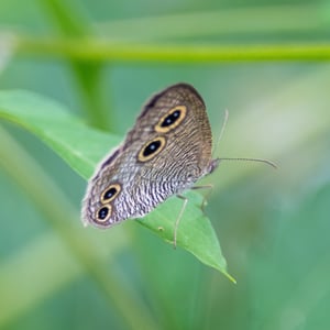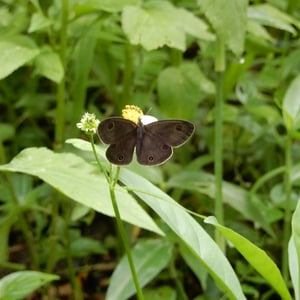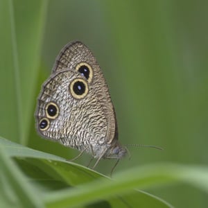 Ypthima multistriata is a species of butterfly commonly known as the Many-striped Satyr. It is characterized by its small size, with a wingspan of about 3-4 centimeters. The upper side of its wings is brown with multiple thin, dark stripes, while the underside is lighter with prominent eyespots. This species is found in tropical and subtropical regions, often inhabiting grassy areas and open forests.
