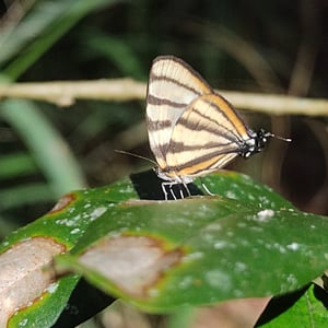 Arawacus is a genus of butterflies in the family Lycaenidae. They are commonly called stripestreaks. The species of this genus are found in the Neotropical realm. Species include: - Arawacus aethesa (Hewitson, 1867) Brazil (Bahia) - Arawacus aetolus (Sulzer, 1776) Columbia, Venezuela, Trinidad, Bolivia, Suriname - Arawacus binangula (Schaus, 1902) Brazil (Paraná) - Arawacus dolylas (Cramer, [1777]) Surinam, Venezuela, Colombia, Bolivia - Arawacus dumenilii (Godart, [1824]) Venezuela, Trinidad - Arawacus ellida (Hewitson, 1867) Venezuela, Paraguay, Colombia, Peru, Argentina, Brazil (Rio de Janeiro) - Arawacus euptychia (Draudt, 1920 Brazil - Arawacus hypocrita (Schaus, 1913) Costa Rica, Mexico - Arawacus jada (Hewitson, 1867) North America – creamy stripe-streak, nightshade hairstreak - Arawacus leucogyna (C. & R.Felder, 1865) Costa Rica, Panama, Venezuela, Colombia - Arawacus lincoides (Draudt, 1917) Colombia - Arawacus meliboeus (Fabricius, 1793) Brazil - Arawacus separata (Lathy, 1926) Peru, Paraguay - Arawacus sito (Boisduval, 1836) Mexico, south to Central America – fine-lined stripe-streak - Arawacus tadita (Hewitson, 1877) Brazil (Paraná) - Arawacus tarania (Hewitson, 1868) Brazil (Paraná, Minas Gerais) - Arawacus togarna (Hewitson, 1867) Mexico, Bolivia