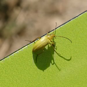 Cteniopus sulphureus is a species of insect belonging to the family Tenebrionidae. It is commonly known as the sulphur beetle due to its bright yellow coloration. This beetle is found in arid regions, particularly in North America. It has a distinctively elongated body and feeds on decaying plant matter.