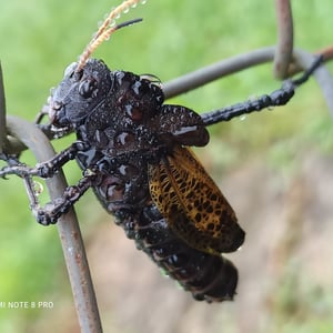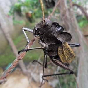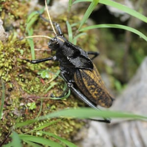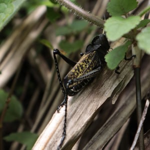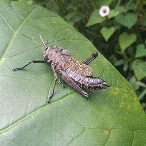 Taeniopoda centurio is a species of grasshopper found in the southwestern United States and northern Mexico. It is known for its striking appearance, with a body length of up to 2 inches and vibrant colors of green, yellow, and black. This insect is primarily herbivorous, feeding on various grasses and plants. It is also known for its strong jumping ability, allowing it to quickly escape from predators.