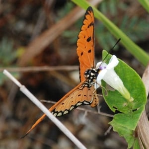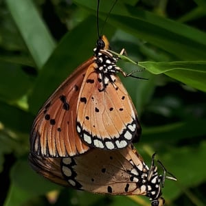 The tawny coster is one of a group of butterflies where females feature a sphragis (copulatory plug) which is formed after a mating session. After males produce the spermatophore, they pass an additional gland secretion (a waxy substance) that spills out of the female's copulatory opening, forming a mating plug that hardens within a few hours for the purpose of preventing further matings.
