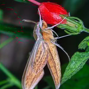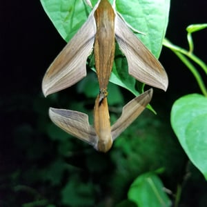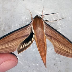 Xylophanes tersa, the tersa sphinx, is a moth of the family Sphingidae. The species was first described by Carl Linnaeus in 1771. It is found from the United States (Massachusetts south to southern Florida, west to Nebraska, New Mexico and southern Arizona), through Mexico, the West Indies and Central America and into parts of South America (including Bolivia, Paraguay, Argentina and Brazil). An occasional stray can be found as far north as Canada. The wingspan is 60–80 mm. The upperside of the forewing is pale brown with lavender gray at the base and has dark brown lines. The upperside of the hindwing is dark brown with a band of whitish, wedge-shaped marks. Adults are on wing from May to October in the north and February to November farther south in the US, and they fly year round in the tropics. There is one generation in the north and several generations farther south, in Florida and Louisiana, for example. The adults feed on the nectar of various flowers, including Lonicera, Mirabilis jalapa and Asystasia gangetica. The larvae feed on Borreria, Catalpa, Manettia, and Pentas species, and Spermacoce glabra, Hamelia patens, Hedyotis nigricans, Heimia salicifolia, Psychotria microdon, Psychotria nervosa, and Inga vera.