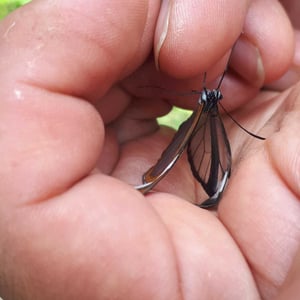Greta morgane, the thick-tipped greta, is a day active ithomiine butterfly from the subfamily Ithomiinae. The length of the wings of this clearwing butterfly range from 56 to 58 mm. It is a common butterfly in Mexico, Middle-America, and the Caribbean. It has been recorded in 2004 as a stray in south Texas. The caterpillar uses plants from the deadly nightshade family (Solanaceae) as hosts. Therefore, the Greta morgane has body fluids which are nauseating for birds, making them unattractive prey.