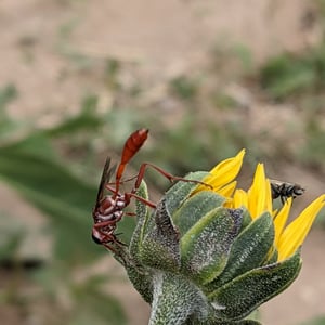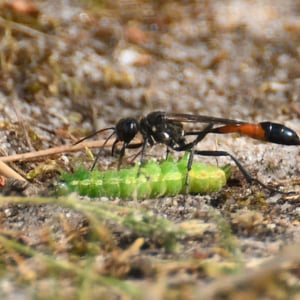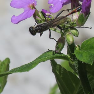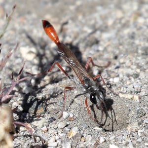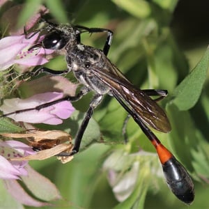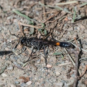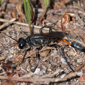 Ammophila is a genus of solitary wasps commonly known as sand wasps. They are found in various habitats, including sandy areas such as beaches and deserts. These insects are known for their impressive hunting skills, as they capture and paralyze other insects to provide food for their offspring. Ammophila wasps are characterized by their slender bodies, long legs, and often have a yellow and black coloration.