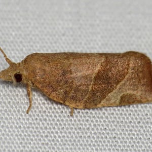 Pandemis limitata, the three-lined leafroller, is a species of moth of the family Tortricidae. It is found in North America, where it has been recorded from Nova Scotia to British Columbia and from the east coast west to the Rocky Mountains and Arizona. It has also been recorded from Durango in Mexico. The length of the forewings is 7–9.5 mm for males and 9–12 mm for females. The forewings are brown with fasciate markings. The hindwings are grey and white. Adults are on wing from June to August in one or two generations per year. The larvae are leaf rollers. They feed on Acer negundo, Acer saccharinum, Alnus species (including Alnus incana and Alnus rubra), Betula species (including Betula papyrifera), Corylus species (including Corylus americana), Viburnum species, Euonymus atropurpureus, Cornus racemosa, Vaccinium species, Amorpha fruticosa, Trifolium species, Castanea species, Quercus species (including Quercus alba and Quercus macrocarpa), Myrica gale, Osmunda species, Malus species (including Malus domestica and Malus sylvestris), Prunus species (including Prunus avium and Prunus virginiana), Sorbus species, Populus species (including Populus alba, Populus balsamifera and Populus tremuloides), Salix species, Tilia americana and Ulmus species (including Ulmus americana and Ulmus rubra), and others. They feed on the terminal leaf growth and sometimes on the fruit of their host plant. Larvae reach a length of about 20 mm. They are entirely green and unmarked. Pupation takes place at the final larval feeding site.