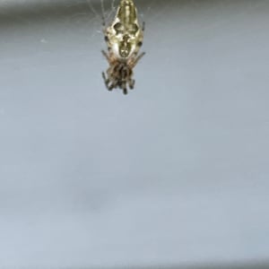 Cyclosa, also called trashline orbweavers, is a genus of orb-weaver spiders first described by Anton Menge in 1866. Widely distributed worldwide, spiders of the genus Cyclosa build relatively small orb webs with a web decoration. The web decoration in Cyclosa spiders is often linear and includes prey remains and other debris, which probably serve to camouflage the spider. The name "Cyclosa" comes from Greek 'to move in a circle', referring to how it spins its web. While most orb-web spiders face downwards in their web when waiting for prey, some Cyclosa species (e.g. C. ginnaga and C. argenteoalba) face upwards.