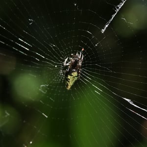 Cyclosa argenteoalba builds two types of web, a traditional sticky spider web, and a resting web that consists of just a few strands. When infected with a larva of the wasp Reclinervellus nielseni, the spider switches on the behavior to build a resting web. The larva then eats the spider and uses the web to complete metamorphosis.