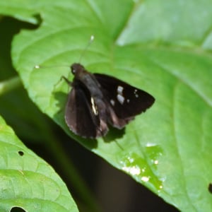 "Male and female, dark chocolate-brown. Upperside, forewing with three small conjugated subapical semi-transparent white spots, three similar and larger discal spots, and a fourth above them within the cell. Underside darker brown basally, paler exteriorly; forewing with spots as above, bordered externally by a suffused dark brown streak; hindwing with a double series of white dark brown-outer-bordered lunules crossing the middle of the wing, beyond which is a submarginal series of suffused dark brown spots. Palpi, thorax, and abdomen beneath pale greyishbrown. Legs brown. Cilia yellowish- white, spotted with pale brown." - Edward Yerbury Watson