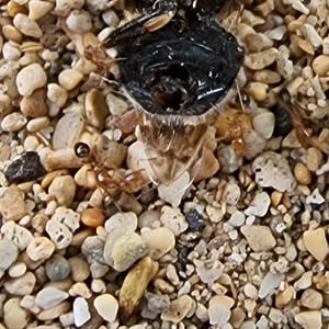Solenopsis geminata, commonly known as the tropical fire ant, is a species of aggressive and highly invasive insect. It is native to South America but has spread to many parts of the world, including the southern United States. These ants are known for their painful stings and large colonies, which can cause significant damage to crops and ecosystems. They are reddish-brown in color and have a distinct two-segmented waist, making them easily identifiable.