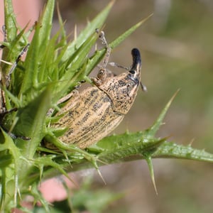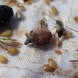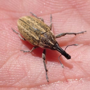 Curculionidae, commonly known as weevils, are a family of beetles that belong to the superfamily Curculionoidea. They are characterized by their elongated snouts or rostrums, which they use for feeding and laying eggs. Weevils are diverse in size, shape, and color, with some species being less than 1 mm long while others can reach up to 40 mm. They are herbivorous and can be found in various habitats worldwide, often causing damage to crops and stored grains.