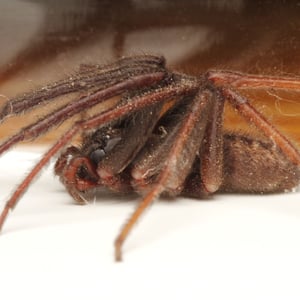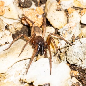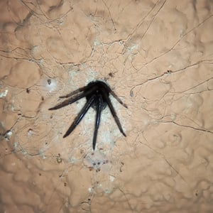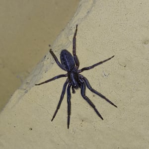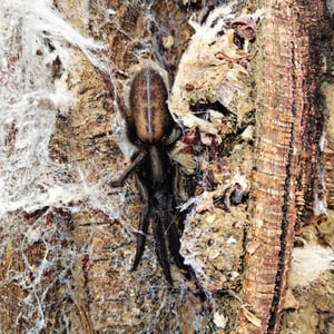 They spin a tubular web, often in cracks of buildings. Six or more silken lines radiate from it, and the spider waits in the entrance, touching the lines with the frontal six legs. Prey triggering these lines get caught, and the spider immediately retreats again to eat it. However, in some cases the spider will kill and begin to consume its prey in the opening of the tube, but will retreat further if disturbed. They hunt nocturnal insects such as moths and cockroaches. Bees and wasps are always bitten at the head end, so the sting will face away from the spider. The female lays her eggs inside the tube web. Sometimes she will die after the spiderlings have hatched, and they will eat their mother. The spider can be lured to the entrance by gently touching the triplines with a stick in the evening or at night.