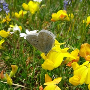 Polyommatus (Plebicula) dorylas, the turquoise blue, is a butterfly of the family Lycaenidae. It is found in southern Europe, Asia Minor, the Ural Mountains, Caucasus and Transcaucasia. Its wingspan is 15–17 mm. The butterfly's common name comes from the dazzling bright blue colour of male's wings. The larvae feed on Anthyllis vulneraria (kidney vetch). The butterfly flies from May to September in two generations. Habitats include flowery meadows in rocky areas at 500–2000 m.