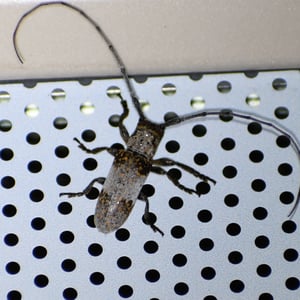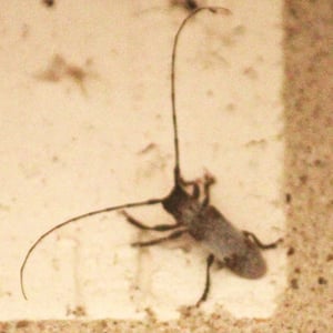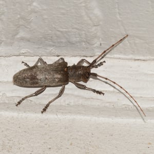 Oncideres cingulata, commonly known as the twig girdler, is a species of longhorn beetle found in North America. It is characterized by its elongated body, ranging from 10 to 20 mm in length, and its distinctive behavior of girdling twigs. The adult beetles lay eggs on the twigs of various hardwood trees, and the larvae feed on the inner bark, eventually causing the twigs to break and fall. This behavior can lead to significant damage to trees, particularly fruit and nut-bearing species.