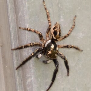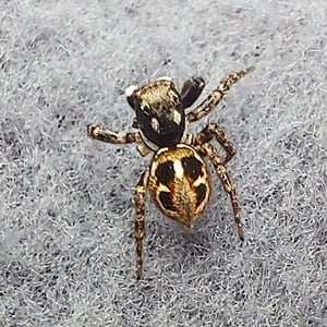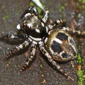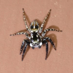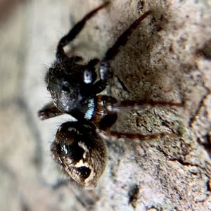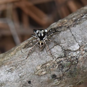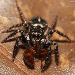 This species exhibits an instinctive and unique hunting method for catching ants. The spider will align its abdomen and thorax so that it directly faces the ant, and then strafe in an arc until the ant is directly facing the spider. Once aligned, the spider will leap and puncture the ant on the dorsal side of the head or thorax. In this position, the dangerous mandibles and stinger are incapable of inflicting damage. When stalking prey such as flies or beetles, this salticid is much more direct in its approach and will pounce and puncture from any direction, presumably because these prey pose less risk to the spider. As is common with jumping spiders, this species uses its silk as a tether whenever leaping. In the event of a miss, they will climb up this silk line back to the previous perch.