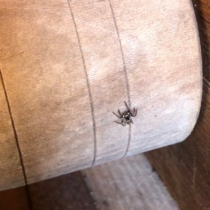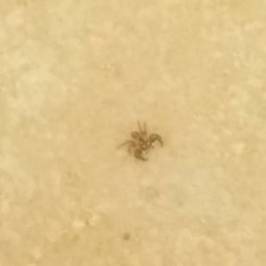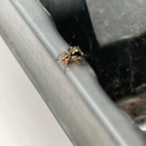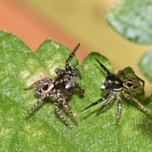 Females lay eggs inside a silk hide or nest and will guard them until they hatch. Clutch size is around fifteen spiderlings per reproductive event. Males use their anterior most pair of legs in a mating display. Initially they will hold these darkened appendages laterally while maneuvering to face the female directly. When the male is within reach, he use these legs to touch the female on her dorsal side.