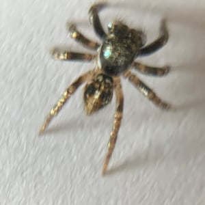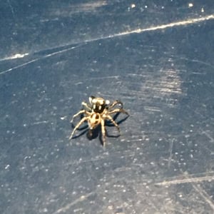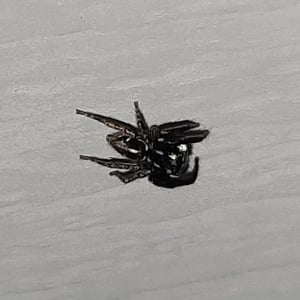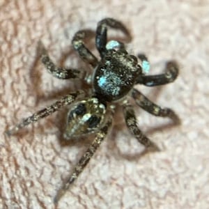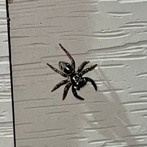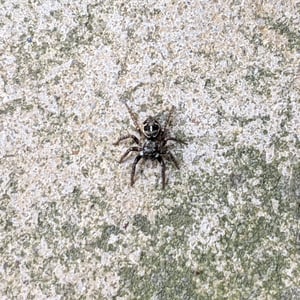 Anasaitis canosa, previously of the genus Corythalia, is a small jumping spider that can typically be found atop leaf-litter or man-made structures such as fences and exterior walls. This species is more commonly known as the twin-flagged jumping spider due to the two pennant shaped markings on the dorsal side of the cephalothorax. Typical of the genus Anasaitis, this species has iridescent setae ("scales") which may appear white, green or pink which create the "flags" as well as patches on the male pedipalps used in courtship and intraspecific signaling. This species is roughly 5 to 6 mm in length. A. canosa ranges from Mexico to South Carolina along the Gulf of Mexico.