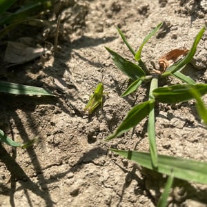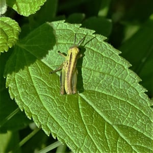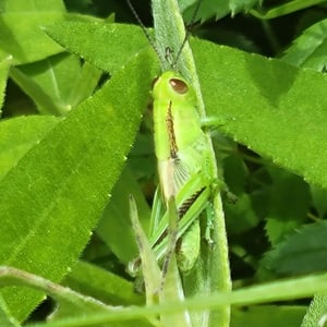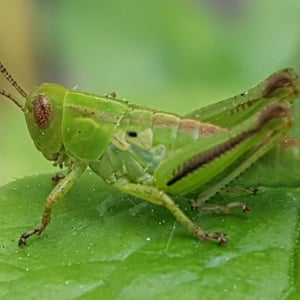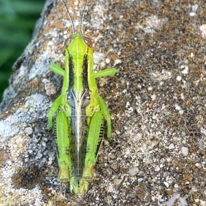Melanoplus bivittatus, commonly known as the Two-striped Grasshopper, is a species of insect belonging to the family Acrididae. It is found in North America, particularly in grasslands and agricultural areas. This grasshopper species is characterized by its medium to large size, reaching up to 2 inches in length, and its distinct two longitudinal stripes running along its body. It is known for its ability to jump long distances and its herbivorous diet, feeding on various grasses and crops.