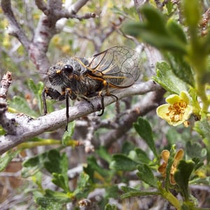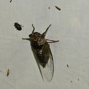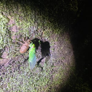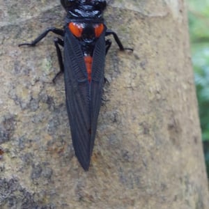 Cicadidae, commonly known as cicadas, are a family of insects characterized by their large size and distinctive buzzing sound. They have transparent wings and prominent eyes, with some species displaying vibrant colors. Cicadas are known for their unique life cycle, spending most of their lives underground as nymphs before emerging as adults to mate and lay eggs. They are found worldwide, primarily in warm and tropical regions.