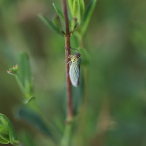 Cicadellidae, commonly known as leafhoppers, are a family of insects belonging to the order Hemiptera. They are small, slender insects with a length ranging from 3 to 15 millimeters. Leafhoppers are known for their ability to jump and their vibrant colors, often found in shades of green, brown, or yellow. They are found worldwide and are known to feed on plant sap, sometimes causing damage to crops.