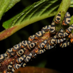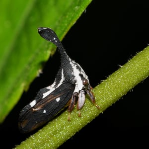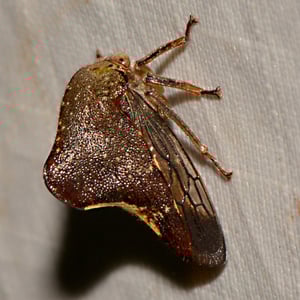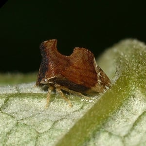 Membracidae, commonly known as treehoppers, are a family of insects belonging to the order Hemiptera. They are characterized by their unique and elaborate pronotum, which resembles thorns, horns, or other structures. Treehoppers are found worldwide, with over 3,000 known species. They are typically found on plants, where they feed on sap and can sometimes cause damage to crops.