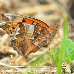 In the variegated fritillary's range, the only similar species is the Mexican fritillary (Euptoieta hegesia). The Mexican fritillary is brighter orange, the upper side of its hindwing basal area is unmarked, and the underside of its wings is plainer, with no submarginal spots or median black lines.