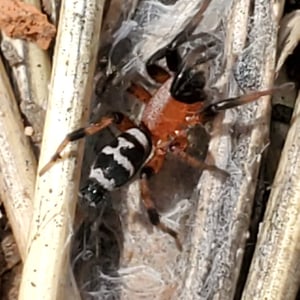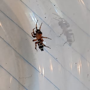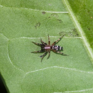 Sergiolus capulatus is a small predatory insect belonging to the family Salticidae, commonly known as jumping spiders. It is characterized by its compact body, measuring around 5-8 millimeters in length, and its distinctive coloration, with a dark brown or black cephalothorax and abdomen. This species is known for its exceptional jumping ability and keen vision, which it uses to hunt and capture its prey. Sergiolus capulatus is commonly found in grassy areas and gardens, where it plays an important role in controlling populations of small insects.
