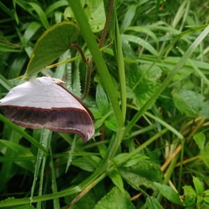 Development from egg to adult takes 32 days or less. The wingspan of the adult is 7 - 8.1 cm (2.8 - 3.2 in). The hindwing has a long, slender tail. The dorsal side is dark brown with paler margins. The ventral side of both the hindwing and forewing have a white inner section and dark brown section closer to the wing margins. The species is slightly sexually dimorphic, with females typically being rounder and larger than the males. Specimens reared in captivity have a tendency to be smaller than those caught in the wild.