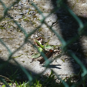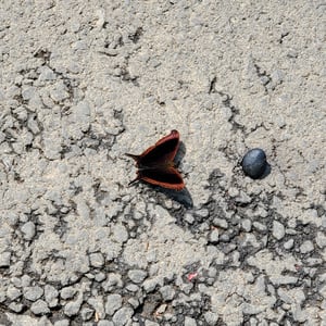 The angular pupae are pale green, marked with darker spots. Spines project outwards down the head and the abdomen. At the base of the wing case is a sharp black spike. A bifurcate spine, short and thick in shape, projects from the mesothorax. Two black spots are present on the back of the head, and orange or yellow coloration, developing to dark brown, is visible at the intersections between body segments.