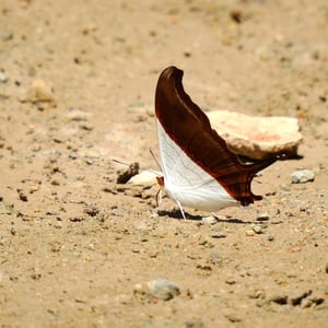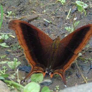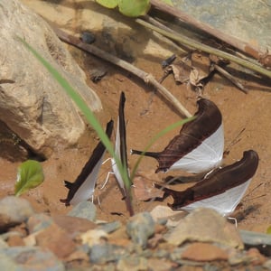 Marpesia zerynthia is typically encountered as small groups of approximately six to twelve males, which are attracted to wet sand and mud to drink from the moisture, rich in minerals. Particularly favored feeding locations are shallow fords in streams or along mountain roads. During hot weather the butterflies flutter constantly and feed with wings erect or partially open. When the conditions are cooler they hold their wings completely outspread for insolation, making it possible to observe the dark brown coloration of the ventral surface of the wings. Adults fly quickly and nimbly, and are often known to perch together in small groups under leaves. In Mexico they usually fly from May to November, or July to October in South Texas. Nutrition is obtained from the nectar of Cordia and Croton, and from excrement and various other non-floral sources. Females are more elusive, rarely descending from the forest canopy. In overcast weather however, they are sometimes known to settle on lower foliage in the forest.