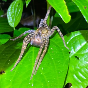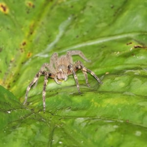 Wandering spiders (Ctenidae) are a family of spiders that includes the Brazilian wandering spiders. These spiders have a distinctive longitudinal groove on the top-rear of their oval carapace similar to those of the Amaurobiidae. They are highly defensive and venomous nocturnal hunters. Despite their notoriety for being dangerous, only a few members of Phoneutria have venom known to be hazardous to humans, but the venoms of this family are poorly known, so all larger ctenids should be treated with caution.
