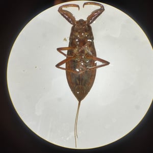 It lives in ponds, small rivers, and stagnant water, and feeds upon aquatic animals, especially insects. Respiration in the adult is effected by means of the caudal process, which consists of a pair of half-tubes capable of being locked together to form a siphon by means of which air is conducted to the tracheae at the apex of the abdomen when the tip of the tube is thrust above the surface of the water. In immature forms, the siphon is undeveloped and breathing takes place through six pairs of abdominal spiracles. The eggs, laid in the stems of plants, are supplied with seven filamentous processes which float freely in the water.