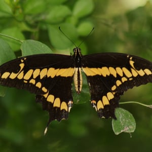Papilio rumiko is a species of swallowtail butterfly. It is found from the south-western United States, through Mexico, El Salvador, Honduras, Costa Rica to Panama. The northernmost record is north-eastern Colorado. The length of the forewings is 50–58 mm. There are two maize-yellow bands on the forewings: a central band of nine spots from the apex to the basal third at the inner margin and a sub-marginal band of three to seven spots. There are several smaller maize-yellow spots near the costa at the end of the discal cell. There is a background-colored dark oval spot of variable size inside or at the anterior edge of the yellow central band spot, sometimes dividing the yellow spot into two. The marginal pale spots at the dips between the veins are small or almost absent. The hindwings have two maize-yellow bands extending from the forewings. There is a maroon-red to orange-red eyespot near the tornus with a blue crescent above. The center of the tail tip is yellow. Eggs are laid singly on young leaves and shoots of Zanthoxylum fagara, Ptelea trifoliata, Amyris texana and Casimiroa greggii, Ruta graveolens and Citrus species. The colour of the egg is pale yellow when laid, gradually changing to dull orange-brown. First instar larvae are 3–5 mm in length with a yellow-brown head capsule. The body pattern resembles bird-droppings. The second instar is 5–11 mm with a uniformly brownish head. Third instars are 11–16 mm, fourth 16–30 mm and fifth instar 30–50 mm. When a late instar larva is startled, it lifts its head and inflates the thorax, revealing the eyespots on the meta-thorax. If disturbed further, it everts red osmeterium from behind the head. Early instar larva tends to use osmeterium right away when disturbed, and osmeterium of the first instar is yellowish. Pupation takes place in a pupa of 26–36 mm in length. It is mottled pale to greyish and dark brown, resembling the surface of a tree or branch it is attached to. The darkness of a pupa is frequently determined by the color of the surface it rests on.