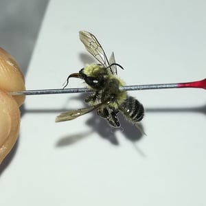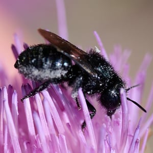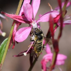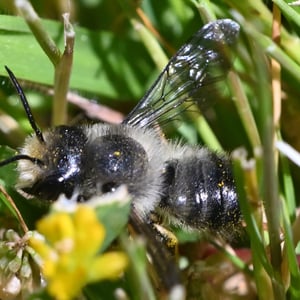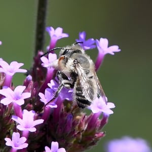 Megachile perihirta, commonly known as the Hairy Leafcutter Bee, is a species of solitary bee found in various regions of North America. It is characterized by its robust body and dense covering of hairs, which give it a fuzzy appearance. These bees are important pollinators, known for their leaf-cutting behavior where they use circular pieces of leaves to construct their nests.