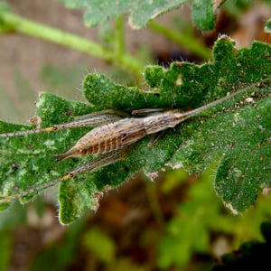 Oecanthus californicus, commonly known as the California tree cricket, is a small insect belonging to the family Gryllidae. It is found in the western regions of North America, particularly in California. This species is known for its distinctive chirping sound, which is produced by the males to attract females during mating season. Oecanthus californicus is typically green or brown in color and has long, slender antennae.