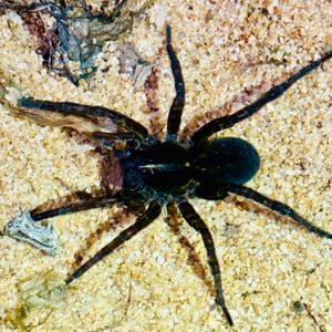 Both Pardosa milvina and Tigrosa helluo are among the more common wolf spider species in the United States, but they do have behavioral differences in their hunting approaches. Whereas T. helluo tends to wait for prey to pass by its location prior to attacking, P. milvina goes out to find its prey. However, the much smaller size of P. milvina also makes it prey for T. helluo.