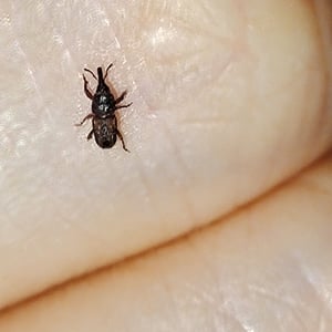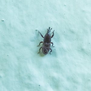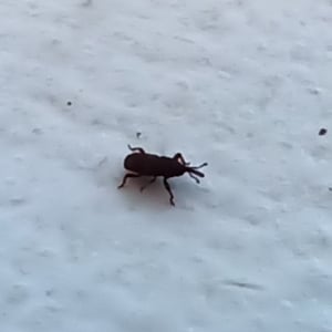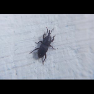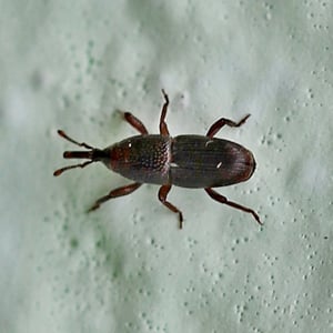 The wheat weevil (Sitophilus granarius), also known as the grain weevil or granary weevil, is an insect that feeds on cereal grains, and is a common pest in many places. It can cause significant damage to harvested stored grains and may drastically decrease crop yields. The females lay many eggs and the larvae eat the inside of the grain kernels.