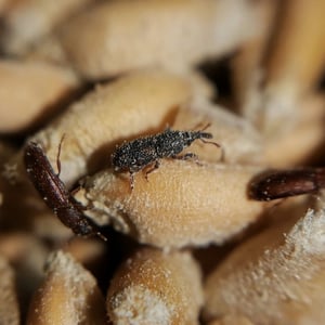 Wheat weevils are wheat, oats, rye, barley, rice and corn pests. Unfortunately the impact of wheat weevils worldwide is unknown because information is not well shared. It is believed to be especially bad in places where the grain harvests are not accurately measured. The weevils are hard to detect and usually all of the grain in an infested storage facility must be destroyed. Many methods have been attempted to get rid of the wheat weevil, such as pesticides, different methods of masking the odor of the grain with unpleasant scents, and some have even gone as far as introducing predator organisms.
