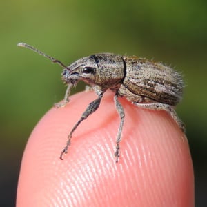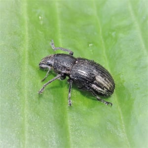 Naupactus leucoloma is a species of weevil commonly known as the Argentine stem weevil. It is native to South America but has been introduced to various regions worldwide. This small insect feeds on the stems and leaves of a wide range of plants, causing significant damage to crops and ornamental plants. Its distinctive white markings on its elytra make it easily recognizable.