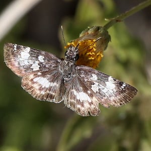 Chiomara asychis, the white-patched skipper or white patch, is a butterfly of the family Hesperiidae. It is found from Argentina, north through tropical America to the West Indies and southern Texas. Strays can be found as far north as southern Arizona, Nevada and Kansas. The wingspan is 29–38 mm. Three to four generations occur, with adults on wing throughout the year in southern Texas. The larvae feed on Malpighia glabra in Texas and on Gaudichaudia pentandra in Mexico. Adults feed on flower nectar.