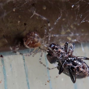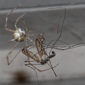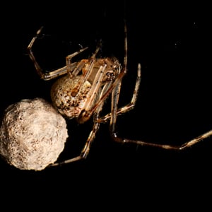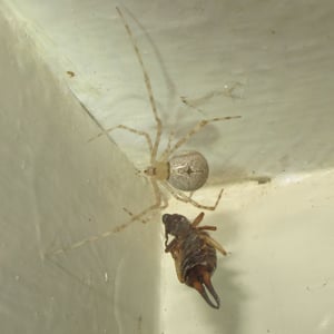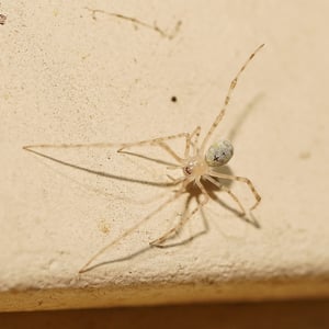 Cryptachaea gigantipes is a large insect species belonging to the order Coleoptera. It is characterized by its impressive size, with adults reaching lengths of up to 5 centimeters. This insect has a dark brown or black body, a hardened exoskeleton, and long, powerful legs adapted for jumping. It is commonly found in tropical rainforests, where it feeds on plant matter and plays a vital role in the ecosystem as a decomposer.