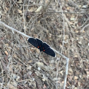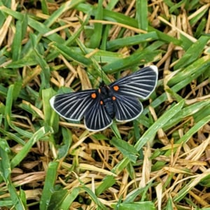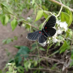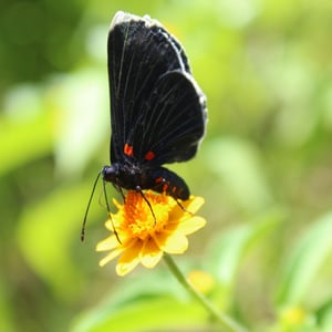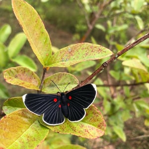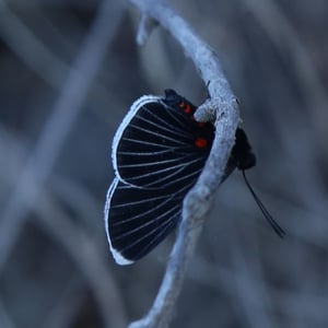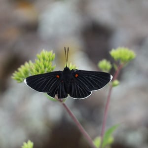 Melanis acroleuca is a species of insect belonging to the family Melanisidae. It is commonly known as the white-tipped black butterfly. This butterfly has a wingspan of approximately 5-6 centimeters and is characterized by its black wings with white tips. It is primarily found in tropical regions, where it feeds on nectar from various flowering plants.