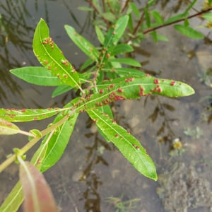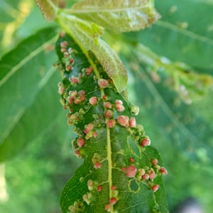 The gall is a green or reddish, rounded pouch or pustule on the upperside of a leaf, which also protrudes on the lower surface of the leaf. There is a slit-like opening on the underside of the leaf which, when mature, is hairy inside but the hairs do not protrude outside of the gall. Many mites can be seen within the opening. The galls are found on white willow (S. alba), eared willow (S. aurita), grey willow (S. cinerea), S. eriocephala, crack willow (S. fragilis), S. integra, bay willow (S. pentandra), purple willow (S. purpurea), Sitka willow (S. sitchensis), S. smithiana, almond willow (S. triandra) and common ossier (S. viminalis''). It is possible that A. tetanothrix is one of a number of closely related species, and the galls on S. alba could be caused by A. salicisalbae. - Similar species